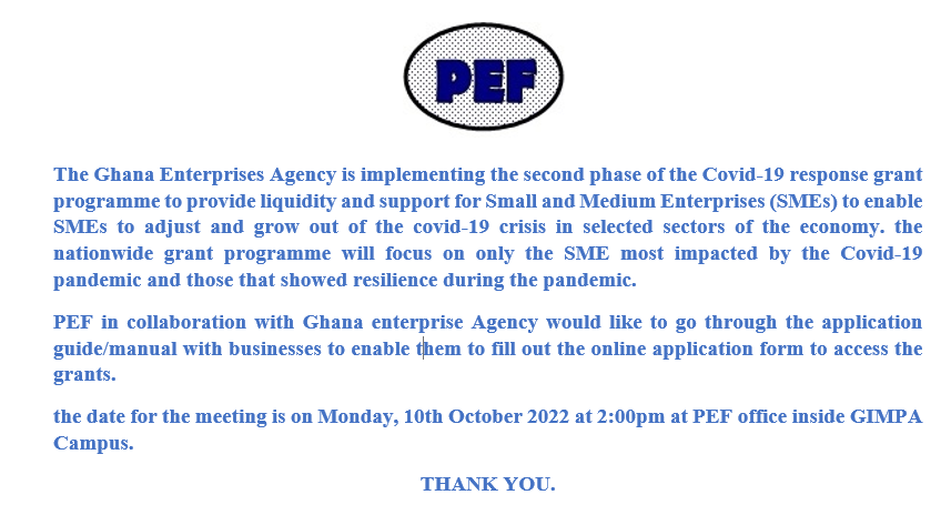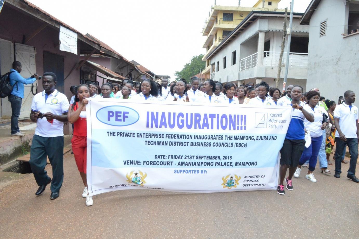 Private Enterprise Federation (PEF) in its effort to engender and consolidate business growth and development at the district levels is implementing a programme to develop District Business Coalitions (DBC) in 3 selected pilot districts namely; Techiman, Ejura and Mampong in Ghana.