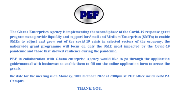 The fragmented nature of Micro, Small and Medium Sized Enterprises (MSMEs) in the districts and by extension the associations that represent them make it difficult for them to effectively articulate their concerns to the respective public sector agencies. Existing MSMEs at the district levels are very vulnerable when it comes to how to effectively advocate policy formulation and changes that will enhance their profitability. Over the years, PEF has come to realize that most private sector businesses especially MSMEs in particular, are very ineffective in drumming home their concerns because of the lack of well-structured representative organizations especially at the district levels. There is therefore the need to build Business Coalitions that will bring together a wider range of business groupings into a common platform at the district levels consequently at the regional levels, to effectively advocate for changes.